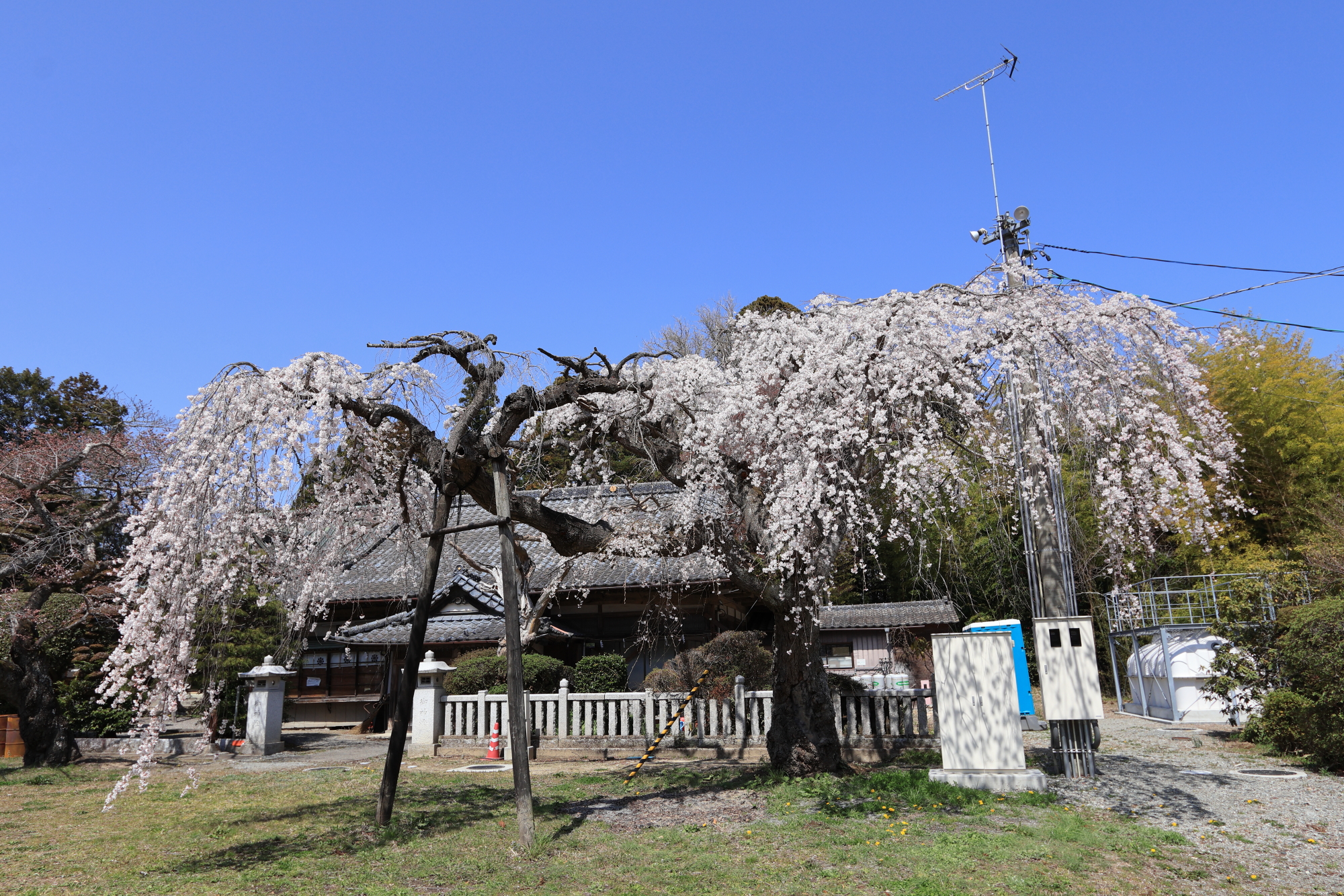 説明:二本の枝垂桜があります。開花は若干早いです。